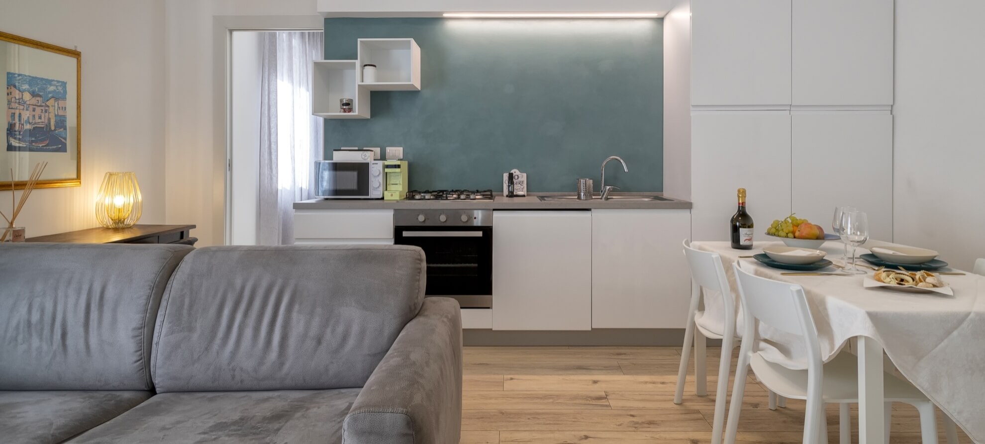 The one bedroom apartment Llevant is located in Alghero in the Mercede district, one of the liveliest of the city a short walk from the historic center. With a pleasant walk of a few minutes you can reach the Lungomare Dante, center of the Alghero summer nightlife with bars, restaurants and stalls, while a few meters from the building we find the Tarragona Park, ideal for children and for a bit of refreshment from the summer heat.